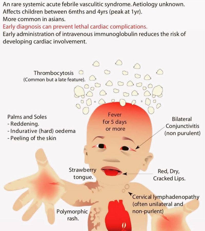 Mucocutaneous lymph node syndrome. A condition that causes inflammation in the walls of some blood vessels in the body. It's most common in infants and young children. It can also cause problems with lymph nodes, skin, and lining of the mouth, nose and throat. Scientists haven't found an exact cause for Kawasaki disease. But they think it's probably linked to a combination of genetics, exposure to viruses and bacteria, and other environment factors, such as chemicals and irritants.Kawasaki disease (KD), or mucocutaneous lymph node syndrome, is an illness that causesinflammation in arteries, veins, and capillaries. ... It's the most common cause of heart disease in children. The Kawasaki Disease Foundation (KDF) estimates that KD affects more than 4,200 children in the United States each year.