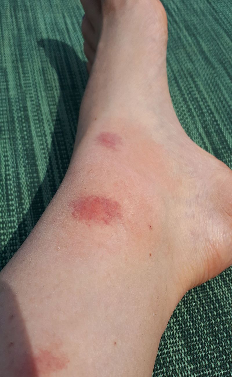 Second day after insect bite. On the first day the bites were larger and light red, on the second day they became a lot smaller and darker, but swollen ankle remains. Pain increases when patient is standing. Any ideas what is going on?