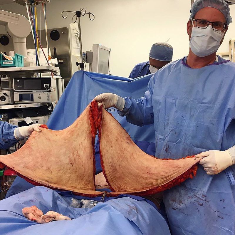 A light day in the operating room... this weight loss patient is now 19.3 pounds lighter, and it was all excess tissue!! Abdominoplasty or tummy tuck is an aesthetic procedure performed for an abdominal deformity of excess skin and subcutaneous tissue and laxity of the abdominal wall musculature. The most common cause of abdominal deformity is pregnancy (often multiple pregnancies), which stretches the skin beyond its biomechanical capability to spring back and stretches the musculoaponeurotic structures of the abdominal wall. The result is stretching and thinning of these structures and diastasis of the rectus muscle. Major weight loss, whether from dieting or a gastric bypass surgery, also plays a role in excess skin and laxity of the abdominal wall. No surprise, The most significant area of the defect is around and below the umbilicus, where excess skin over a diastasis of the rectus muscles is most apparent. Abdominoplasty removes not just the excess fat and skin, but in most cases, it restores weakened or separated muscles and tightens then to create a smooth and firm abdominal profile. Photo credit to @drjosephmichaels