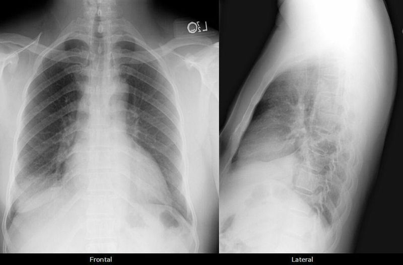 Right lower lobe consolidation, Cardiomegaly