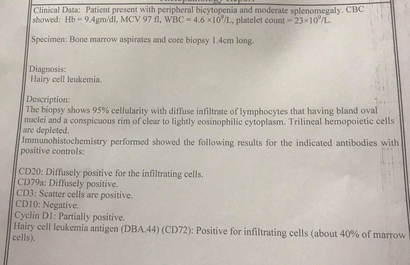 Result of bone marrow biopsy of pt 35 years old and history beginning 2 months ago as mentioned in previous post