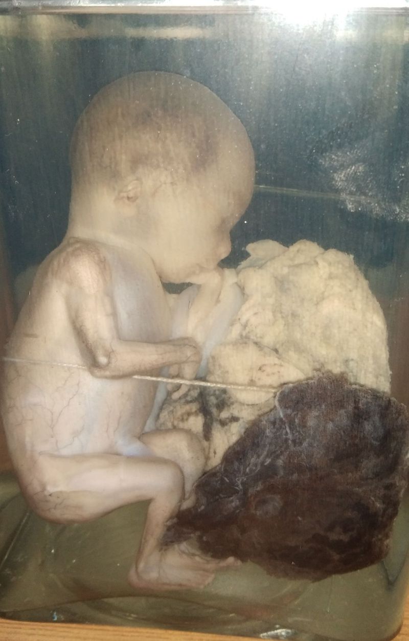 The birth of baby..is most.happiest day for the parents....but what..when..they get aborted..or preserved..due to..no identity...or killed. Due to inability of parents to handle a living relationships. This is.all..sarcastic... Well.......here. the baby..is presrved. Along with the placental...part of mother...nd..is showing .the love. But..anybody of u know...what is that..in which it is preserved..nd why do not get decayed..????