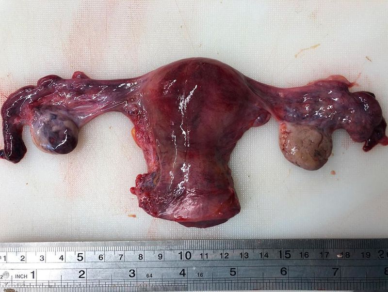 There is no other organ quite like the uterus! An interesting specimen we've received, showing the removed uterus along with its fallopian tubes and ovaries, a procedure known as total hysterectomy with bilateral salpingo-oophorectomy. The uterus is a hollow muscular organ that nourishes the developing baby during pregnancy. During the surgery the whole uterus is usually removed, along with adjacent structures. There are many reasons regarding of why it is performed, including an endometrial cancer, cancer of the cervix, adenomyosis (presence of ectopic glandular tissue within the myometrium, causing heavy painful periods), ovarian or endometrial cancer and uterine prolapse (slipping of the uterus into the vagina). Removal of the uterus leaves the patient unable to bear children (as does removal of ovaries and fallopian tubes) and has surgical risks as well as long-term effects like hormonal imbalance, so the surgery is normally recommended as a last resort when other treatment options are not available or have failed. Photo by @123anatomy_human321