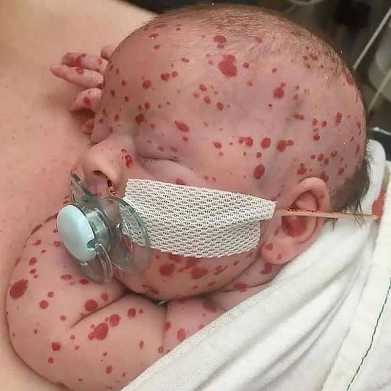 Interesting case, provided to us by @fortbendmd of a child presenting with multiple hemangiomas. A hemangioma is a bright red birthmark that shows up at birth or in the first or second week of life. It looks like a rubbery bump and is made up of extra blood vessels in the skin. A hemangioma can occur anywhere on the body, but most commonly appears on the face, scalp, chest or back. Treatment for a baby's hemangioma (infantile hemangioma) usually isn't needed as it fades over time. A child who has this condition during infancy usually has little visible trace of the growth by age 10. You may want to consider treatment if a hemangioma interferes with seeing, breathing or other functions. A hemangioma may be present at birth, but more often appears during the first several months of life. It starts as a flat red mark anywhere on the body, most often on the face, scalp, chest or back. Usually a child has only one mark. Some children may have more than one, particularly if they're part of a multiple birth. During your child's first year, the red mark grows rapidly into a spongy, rubbery-looking bump that sticks out from the skin. The hemangioma then enters a rest phase and, eventually, it begins to slowly disappear. Many hemangiomas disappear by age 5, and most are gone by age 10. The skin may be slightly discolored or raised after the hemangioma goes away.