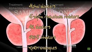 Slow insidious growth of the prostatic stromal cells and epithelial glands eventually compressing the urethra. There will be progressively increasing pressure within the bladder and hypertrophy of the detrusor muscle. The exact cause of BPH is not well known. The drugs used to improve the symptoms of BPH are 1) Alpha-1 blocker { PRAZOSIN TERAZOSIN DOXAZOSIN TAMSULOSIN* ALFUZOSIN SILODOSIN*} 2) 5-alpha reductase enzyme inhibitors { FINASTERIDE DUTASTERIDE*} 3)Phosphodiesterase-5 inhibitors {SILDENAFIL VARDENAFIL TADALAFIL AVANAFIL} 4) Androgen Receptor blockers {FLUTAMIDE BICALUTAMIDE ENCALUTAMIDE NILUTAMIDE} 5) GnRH Analogues {LEUPROLIDE GOSERELIN HOSTRELIN NAFARELIN}