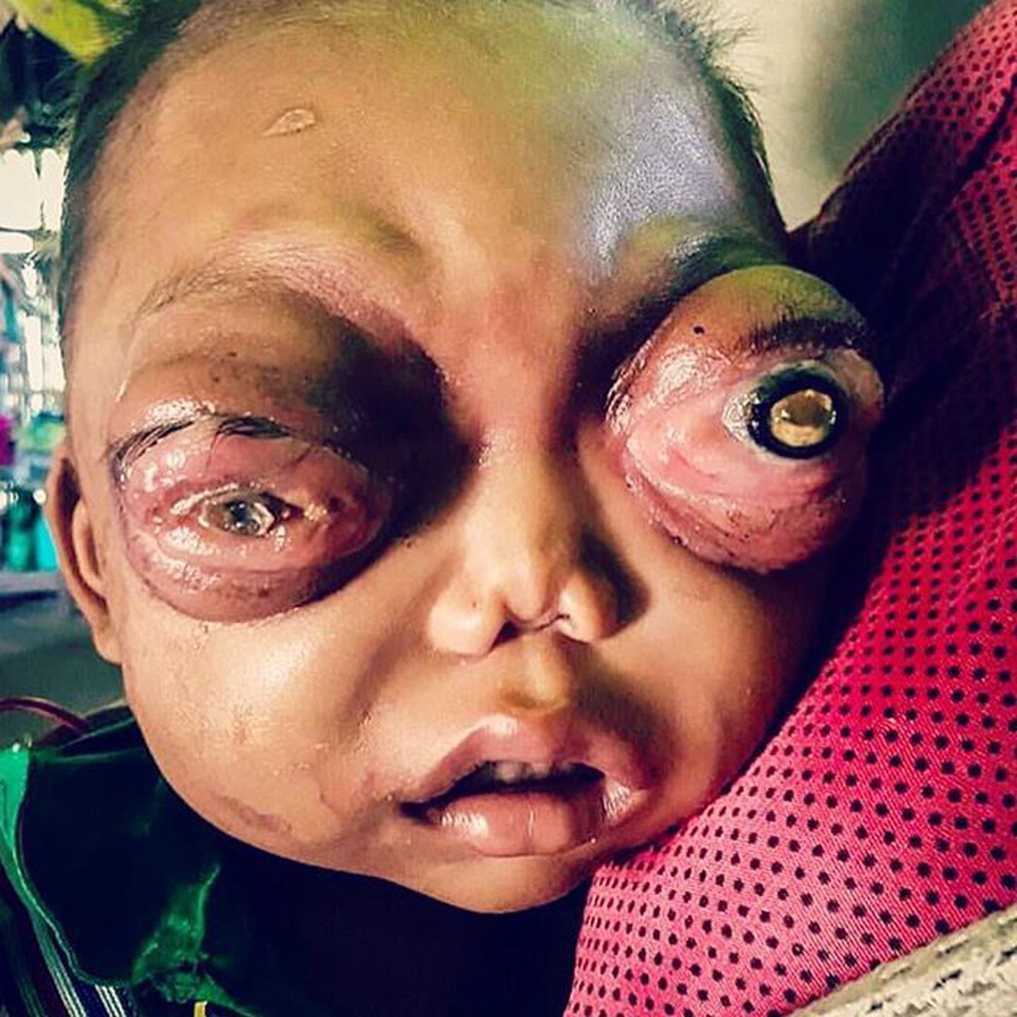 The toddler named Zailian Kaipeng had painful protruding eyes who was slowly going blind. His mother said Zailian was born a healthy baby, but then his eyes started swelling a couple of months after birth. Previously, Zailian's family consulted local doctors but none could diagnose his condition. They gave him some medicines and sent them home but his painful symptoms got worse. It made his eyes forward so much that the eyelids could not close, forcing his eyes open for more than a year. Finally after getting medical attention, the boy was diagnosed with Acute lymphoblastic leukemia (ALL). He was admitted to the hospital, ready to take his first shot of chemotherapy.