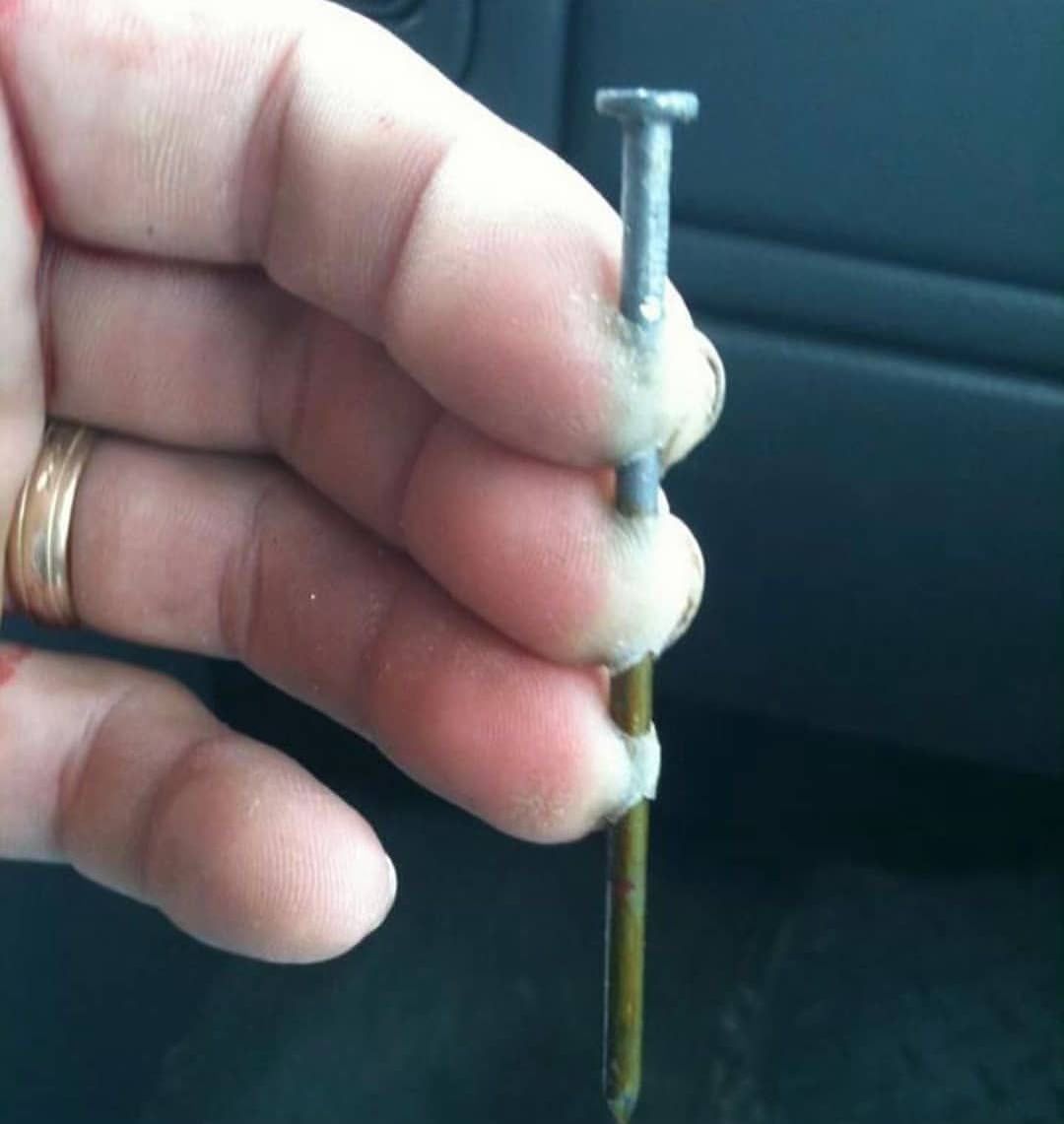 Because a nail through a single finger is just too mainstream! Treatment of a retained nail following nail-gun injury adheres to standard principles of wound management. A single dose of intravenous or intramuscular antibiotics is often administered, usually a first-generation cephalosporin to cover skin flora contamination in uncomplicated cases. Regional blocks are usually sufficient for wound exploration and debridement. The wound and surrounding soft tissues are thoroughly irrigated with or without the addition of antimicrobial agents. Exploration for removal of foreign material and to avoid secondary injury from nail extraction should be considered. Follow us at @Medicalpedia for more exciting cases!