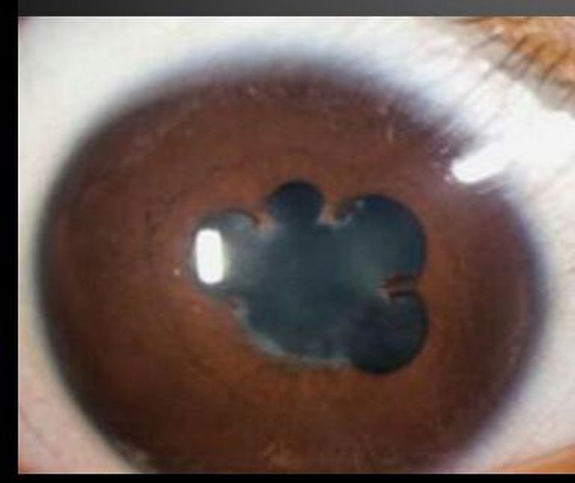 Festooned pupil occurs due to posterior synechiae (adhesions) between the iris and the lens at more than one point. It's one of complications of iridocyclitis.