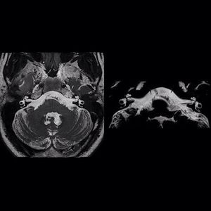 Reduced-FOV imaging for 3D TSE (#ZOOMit SPACE) uses dynamic excitation pulses to achieve selective field-of-view (zoomed) imaging, without aliasing artifacts. With this sequence we can achieve faster, higher-resolution imaging (due to higher SNR) and we can detect and evaluate smaller lesions, especially in areas prone to susceptibility artifacts. 3D SPACE of the inner ear, 47% reduction in imaging time in right image (ZOOMit SPACE). #MRI #3D_SPACE #new_MR_applications