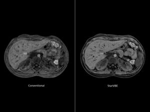 Unfortunately, uncooperative patients cannot hold their breath. The new sequence from @siemens that called STAR VIBE (Radial VIBE), provides radial k-space sampling in a fully seamless way, aiming at achieving higher robustness to motion and flow effects in daily practice. The STAR VIBE sequence can yield images of comparable image quality with conventional breath hold VIBE sequence at the expense of longer acquisition time.