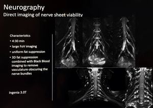 High-Resolution 3D Volumetric Nerve-Sheath Weighted RARE Imaging (3D SHINKEI). 3D SHINKEI technique combines fat-suppression pre-pulse (SPectral Attenuated Inversion Recovery: SPAIR) for uniform fat signal suppression, iMSDE preparation for signal suppression from vessels, and 3D variable refocusing flip-angle RARE readout segments for contrast-efficient T2-weighted images. Furthermore, iMSDE pre-pulse was based on T2-preparation (T2-prep) pulse and therefore T2-contrast is affected by preparation duration (iMSDE-prep). 3D-SHINKEI technique will be made possible to nerve-sheath depiction.