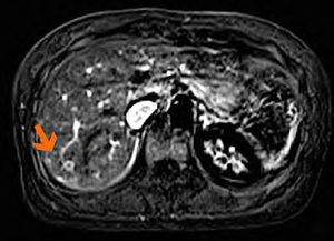 CAIPIRINHA-Dixon-TWIST (CDT) Volume-Interpolated Breath-Hold Examination (VIBE) is a new MR technique for fast Time-Resolved dynamic 3-Dimensional (3D) Imaging of the abdomen with high spatial resolution. The technique seems suitable for the detection and characterization of focal abdominal lesions such as liver and pancreatic masses. For the feature of metastasis, CDT-VIBE not only provides the ring-like enhancement pattern, but also clearly shows the feeding vessel of the lesion. Figure: Feeding vessel of the lesion is visualized in the 3D subtracted arterial phase images (Wang et al., 2014).