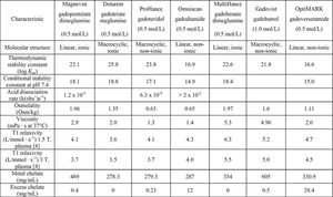 Gadolinium Based Contrast Agents (GBCAs) characteristics.