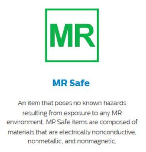 Let's talk about MR safety. Understanding implant types and scanning conditions. Definitions and icons: MR Safe.
