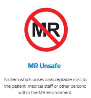 Understanding implant types and scanning conditions. Definitions and icons: MR Unsafe.