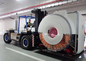 The Royal Children's Hospital (Melbourne, Australia) became the first paediatric hospital in the southern hemisphere to install a MR-PET scanner, @siemens Biograph mMR. The nine tonne Magnetic Resonance Positron Emission Tomography machine, or MR-PET, was safely manoeuvred into its new home in the hospital’s Medical Imaging Department today by a team of eight and a 20-tonne forklift. Made possible by the generosity of Victorians through the 2012 Good Friday Appeal (GFA), the state-of-the-art machine will significantly improve outcomes for patients with cancer, neurological conditions and other disorders by giving a more accurate diagnoses. RCH Neurologist, Dr Simon Harvey, said the MR-PET combines the most effective medical scanning procedures, MRI and PET, into one piece of equipment for the first time. “For our young patients, some of whom require sedation and even general anaesthetic to undergo these important but intimidating procedures, the MR-PET will mean fewer scans, and therefore a more positive experience,” he said.