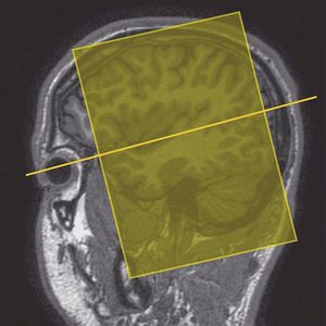 Coronal oblique imaging of the temporal lobes. Slices are angled perpendicular to the temporal lobe (or perpendicular to the axials) (Westbrook C., 2014).