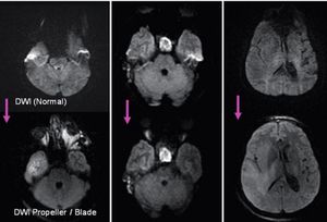 Due to susceptibility issues SS-EPI DWI in specific body parts (e.g. skull base, IAC) used to be difficult. DWI Propeller provides significantly increased image quality in the area of interest with reduced image distortions.