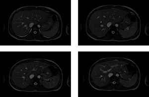 High resolution 2D True-FISP for the MR Imaging of the liver. True-FISP sequence provides high SNR and resolution but is not good for the characterization and differentiation of the pathology, due to its inherent T2/T1 contrast.