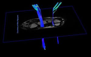 30 directions within 3 minutes of scan time, 1.5 mm isotropic covering the whole wrist with b values 0 s/mm2 and 1000 s/mm2. Image dataset acquired at 3.0 Tesla.