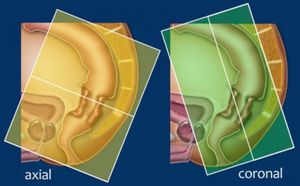 High resolution 2D T2-weighted fast spin echo sequences in the sagittal, axial and coronal plane are required for state-of-the-art staging of rectal cancer. The slice thickness should be 3 mm. Gadolinium-enhanced MR does not improve diagnostic accuracy and is not included in the protocol. Start with the sagittal series. These can be used to plan the axial images (left), perpendicular to the rectal wall at the level of the tumor to avoid volume averaging (yellow box). Coronal images (right) are planned parallel to the anal canal (green box), especially in low-rectal tumors in order to accurately evaluate the depth of tumor invasion into the anal sphincter. The cranial border of the field of view (FOV) is vertebral body L5, the caudal border is below the anal canal. Finally, Diffusion weighted imaging (DWI) can be useful for tumor and lymph node detection in primary staging.