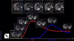 Conventional liver DCE-T1w imaging requires one breath-hold (~15–20 s) for one phase, and in this case, the lesion enhancement pattern may be weakened or missed due to improper timing or the fast uptake and washout of the contrast agent in certain types of lesions. CAIPIRINHA-Dixon-TWIST (CDT) Volume-Interpolated Breath-Hold Examination (VIBE) is a new MR technique for fast Time-Resolved dynamic 3-Dimensional (3D) Imaging of the abdomen with high spatial resolution. The Controlled aliasing in parallel imaging results in higher acceleration (CAIPIRINHA) facilitates the use of higher acceleration factors allowing further reductions in image acquisition time to 10 seconds for abdominal MRI. The Dixon method is a robust technique, which is based on the difference of chemical shift between fat and water protons. Dixon fat separation techniques are virtually insensitive to B0 inhomogeneities, even at 3T, and can also be combined with VIBE sequences. The new generation of 3-T MR scanners can acquire these 2 echoes in less than 2.5 milliseconds so that the total acquisition time is not substantially affected. TWIST (Siemens)/ TRICKS (GE) allows significant acceleration of the acquisition, theoretically facilitating dynamic, first-pass contrast-enhanced imaging within a single breath hold. With these techniques, the central portion of k-space, which determines image contrast, is sampled more frequently than the k-space periphery. Both TWIST and TRICKS have been used primarily for time-resolved contrast-enhanced MR angiography (4D MRA) but can also be combined with volumetric 3-dimensional (3D) GRE sequences such as VIBE. The CDT-VIBE may also prove useful for the acquisition of perfusion measurements in pelvic, breast, and extremity imaging.