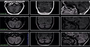 Contrast-enhanced 3D SPACE FLAIR imaging seems to improve detection of leptomeningeal disease when compared with contrast-enhanced 3D T1-w SPACE imaging. Images courtesy of Bac Nguyen.