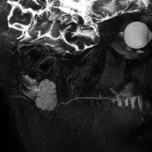 MR sialography is a non-invasive MRI technique used to evaluate diseases of the salivary ducts. MR sialography is based on the principle that stationary fluids will produce bright signal on heavily T2-weighted images. Sialography uses T2 weighted sequences with very long TR (8000) , TE(500) and fat suppression to highlight fluid and suppress other surrounding tissue signals. MR Sialography has the advantage of depicting the glandular parenchyma in addition to depicting sialolithiasis and other changes of the ductal structure. MRI imaging has the potential to provide spatial information on salivary gland function.