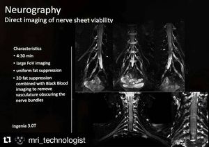 High-Resolution 3D Volumetric Nerve-Sheath Weighted RARE Imaging (3D SHINKEI). 3D SHINKEI technique combines fat-suppression pre-pulse (SPectral Attenuated Inversion Recovery: SPAIR) for uniform fat signal suppression, iMSDE preparation for signal suppression from vessels, and 3D variable refocusing flip-angle RARE readout segments for contrast-efficient T2-weighted images. Furthermore, iMSDE pre-pulse was based on T2-preparation (T2-prep) pulse and therefore T2-contrast is affected by preparation duration (iMSDE-prep). 3D-SHINKEI technique will be made possible to nerve-sheath depiction.