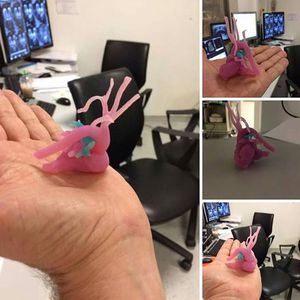 3D printing of repaired congenital disease of an infant, based on a 3D CE MRA sequence (1x1x1mm voxel) from Avanto 1.5T Siemens tree. Great colour indicates pulmonary arteries. Images courtesy of Dimitris Priovolos.