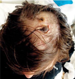 These images are from a 46-year-old woman. Which of these other symptoms would you not expect her to experience? 1) Collapse 2) Hair loss 3) Seizures 4) Dizziness .......???????