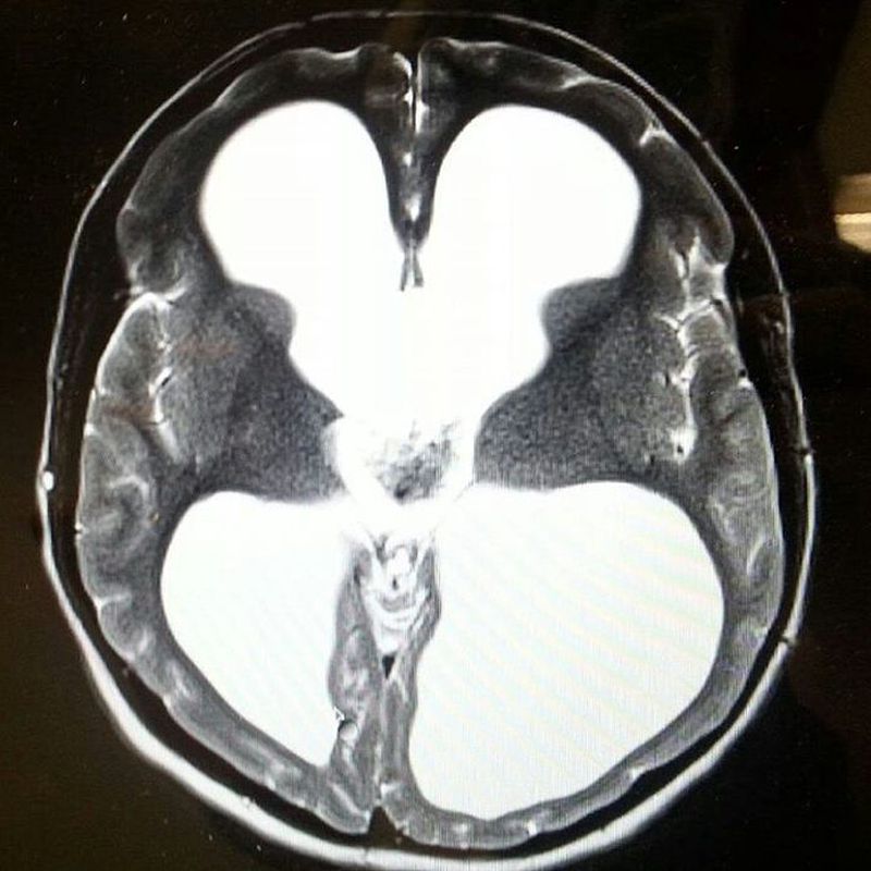This is the brain of someone who is as normal as me and you, it shows Congenital Hydrocephalus: congenital disease characterized by abnormal accumulation of cerebrospinal fluid in the brain due to obstruction in the CSF rainage. This is the case of 21 years old female who was born with this malformation and got treated surgically with ventricular shunt to surpass the obstruction, whats remarkable here is that she has full cognitive function and do really good in school which shows how elastic is the brain and it can learn lost functions specially in the first years of life. follow us for more !