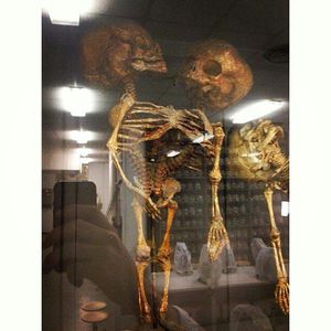This is a rare skeleton of Conjoined twins which are identical twins joined in utero. An extremely rare phenomenon, the occurrence is estimated to 1 in 189,000 births The more generally accepted theory is fission in which a fertilized egg completely separates, but stem cells (which search for similar cells) find like-stem cells on the other twin and fuse the twins together. Conjoined twins share a single common chorion, placenta, and amniotic sac, although these characteristics are not exclusive to conjoined twins. from @davide_ramoni @medicalcortex #medicine #medical #twins #conjoinedtwins #f4f #l4l #medstudent #medicalstudent #nurse #doctor #museum #pregnant #surgery #surgeon #scrub #pregnant #pregnancy #skeleton #anatomy #stemcell #nursing