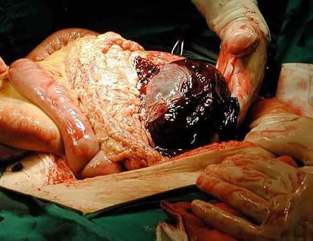 Grade 3 spleen laceration, in case of trauma, abdomenal CT is done in order to exclude any organ damage or internal bleeding, in case of presence of blood an open laprotomy is done to explore and fix the damaged organ! Rupturing a spleen describes an emergency situation in which your spleen has developed a break in its surface. This is serious condition that can occur during a direct blow or trauma and without emergency treatment a ruptured spleen can cause life threatening internal bleeding. Spleen laceration is considered one of the most affected organs in car accidents(although new statistics state liver.