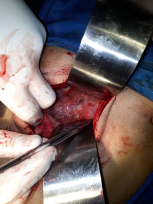 Acute general pretonitis due to peptic ulcers perforation.