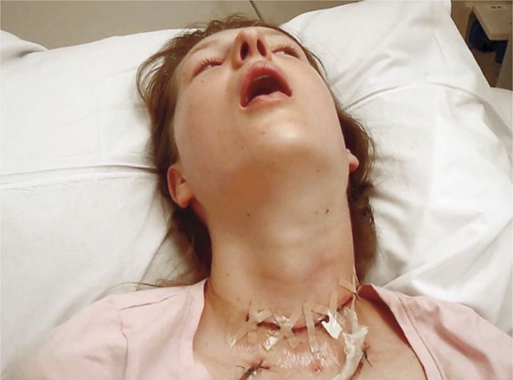 A 21-year-old woman with thyroid carcinoma underwent total thyroidectomy and lymph-node dissection. Two days after surgery, she had forced extension of the neck, nonrigid opening of the jaw, and lateral deviation of eyes to the left without a rhythmic component (Video 1). The patient remained able to follow commands (e.g., she was able to stick out her tongue when asked). She had been treated for postoperative nausea with metoclopramide, a frequently used antiemetic agent with an antidopaminergic effect, having received 10 mg orally twice a day for 2 days, with symptom onset 24 hours after the first dose and worsening during the next 9 hours. Treatment with intravenous biperiden, an anticholinergic agent, was initiated, and the symptoms resolved within minutes (Video 2). Metoclopramide was discontinued, and there were no further acute dystonic reactions. Such reactions to metoclopramide occur most frequently in children and persons younger than 30 years of age and occur at greater frequency with the administration of doses greater than 30 mg per day. The patient was advised to avoid future use of metoclopramide.