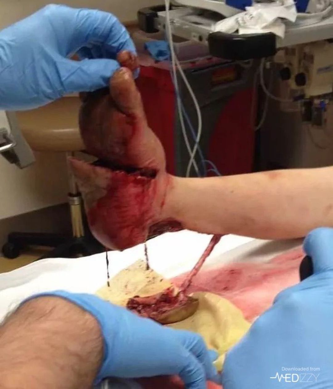How did that happen? Is there a wound on the bottom of the foot and also the Achilles tendon?
