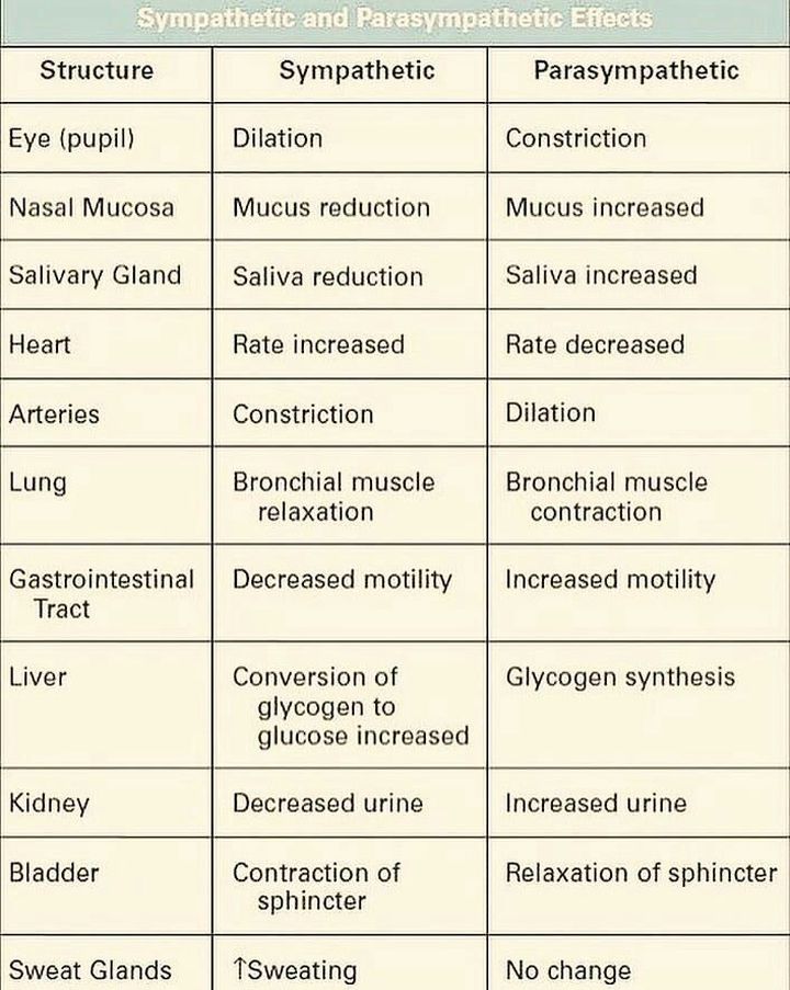 Symapathetic vs. Parasympathetic effects on different organs