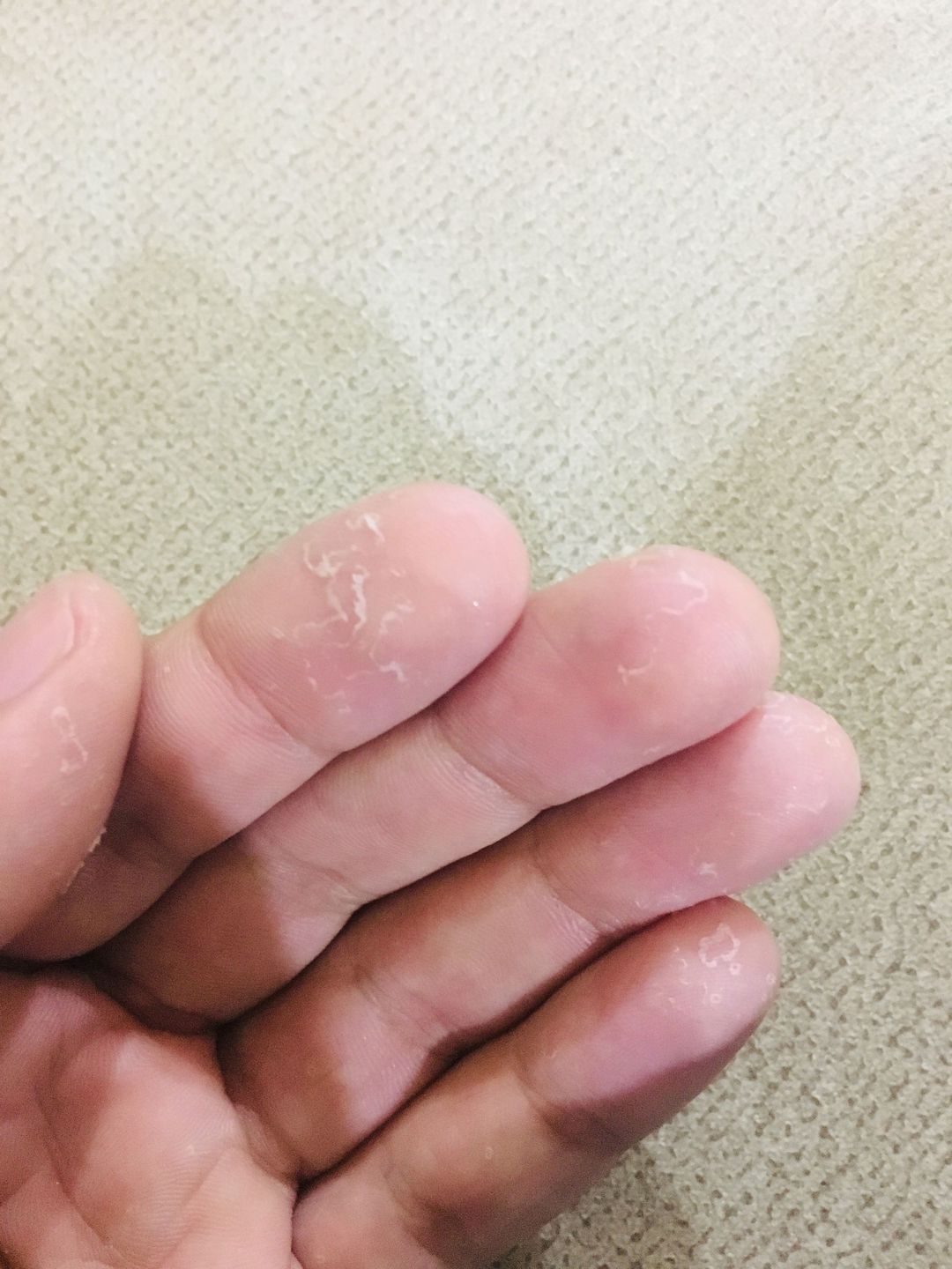 I don’t know how tell full case, all of my finger falling of skin suddenly occurred and some of palm is occure