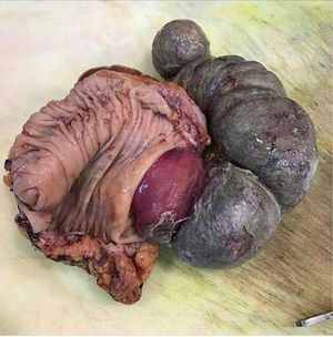 Is is a resected portion from GIT of an Subject showing the ileo-caecal intussusception.