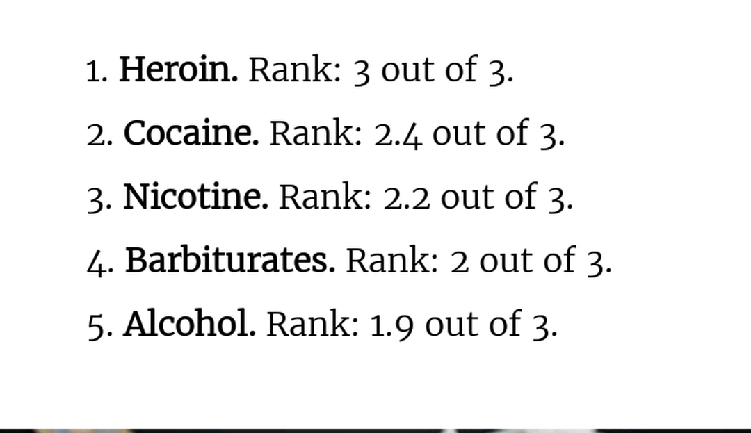They scored each drug on a scale from 0-3, where 3 was the most addictive and o the least. Here are the top five most addictive substances: