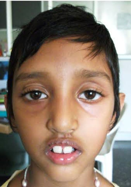 7 years old girl developed hearing impairment and has History of mouth breathing and nasal obstruction for last 6 months.. If possible explain the features in the picture too.. Answer on 17 October