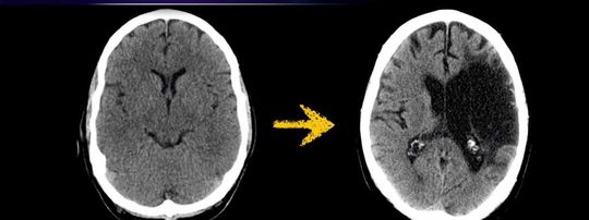 Ischemic stroke ( CVA ) is characterized by the sudden loss of blood circulation to an area of the brain, resulting in a corresponding loss of neurologic function. Acute ischemic stroke is caused by thrombotic or embolic occlusion of a cerebral artery and is more common than hemorrhagic stroke.
