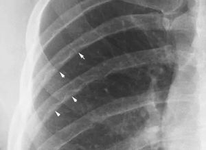 Here X ray plate showing inferior rib notching (Roesler Sign).It is seen in coarctation of aorta due to enlarge collateral vessels.Other causes include interrupted aortic arch,subclavian artery obstruction etc.
