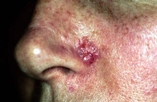 Skin Cancer Basal Cell Carcinoma - Left Naso-mesial fold. Rodent Ulcer