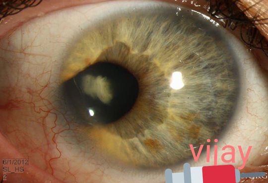 This patient presented with a temporal anterior segment coloboma in his right eye. This is unusual as colobomas are typically inferonasal, where the optic fissure fails to close completely during development.