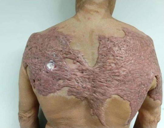 When skin is injured, fibrous tissue called scar tissue forms over the wound to repair and protect the injury. In some cases, extra scar tissue grows, forming smooth, hard growths called keloids. Keloids can be much larger than the original wound. They’re most commonly found on the chest, shoulders, earlobes, and cheeks. Keloid scarring can form on large areas of your body, but this is generally rare. When it happens, the hardened, tight scar tissue, like in this case, may restrict movement. An estimated 10 percent of people experience keloid scarring. People with darker skin tones are more prone to keloids.Keloids tend to have a genetic component, which means you’re more likely to have keloids if one or both of your parents have them. Keloids are sometimes confused with another more common type of scar called hypertrophic scars. These are flat scars that can range from pink to brown in color. Unlike keloids, hypertrophic scars are smaller, and they can go away on their own over time. The decision to treat a keloid can be a tricky one. Keloid scarring is the result of the body’s attempt to repair itself. After removing the keloid, the scar tissue may grow back again, and sometimes it grows back larger than before. Initially less-invasive treatments are recommended, such as silicone pads, pressure dressings, or injections, especially if the keloid scar is a fairly new one. These treatments require frequent and careful application to be effective, taking at least three months to work. In the case of very large keloids or an older keloid scar, surgical removal may be recommended. The rate of return for keloid scarring after surgery can be high. However, the benefits of removing a large keloid may outweigh the risk of postsurgery scars. Cryosurgery is perhaps the most effective type of surgery for keloids. Also called cryotherapy, the process works by essentially “freezing” away the keloid with liquid nitrogen. Corticosteroid injections after surgery may also be recommended to reduce inflammation and lower the risk of the keloid returning. TAG a friend and FOLLOW us at @Medicalpedia for more!