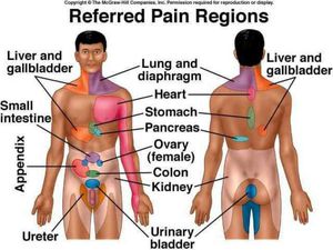 Pain of appendicitis, gall bladder stones ,kidney stones, ovarian cyst, ureter stones..