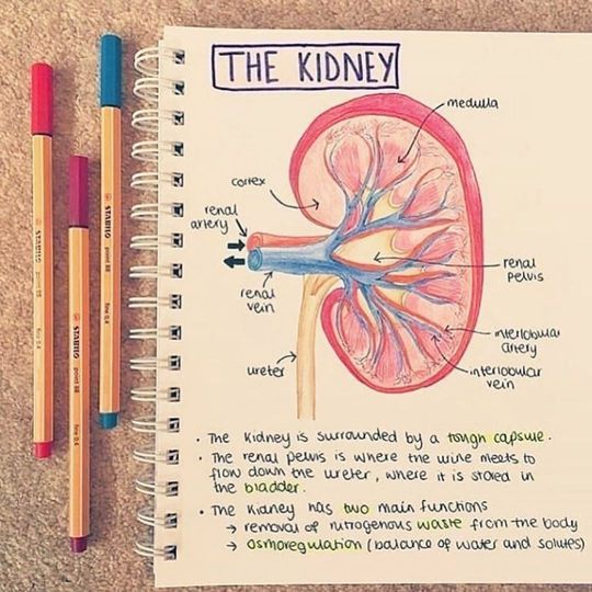 The kidneys are two bean-shaped organs, each about the size of a fist. They are located just below the rib cage, one on each side of your spine. Healthy kidneys filter about a half cup of blood every minute, removing wastes and extra water to make urine. The urine flows from the kidneys to the bladder through two thin tubes of muscle called ureters, one on each side of your bladder. Your bladder stores urine. Your kidneys, ureters, and bladder are part of your urinary tract.