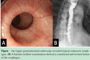 Hints-Patient present with history of dyspepsia.In barium swallow "Cork screw sign" is seen.